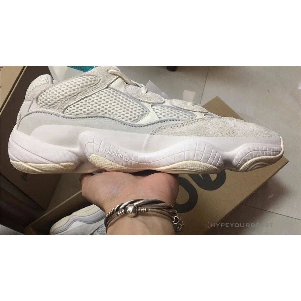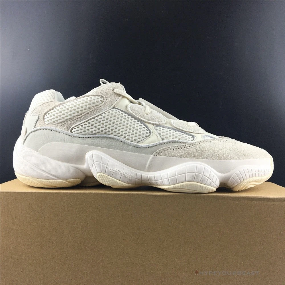 Get a pair of Adidas Yeezy Boost 500 Bone White and experience its aesthetic white colorway along with its classic-fitting finish, materials, and shoe performance.
