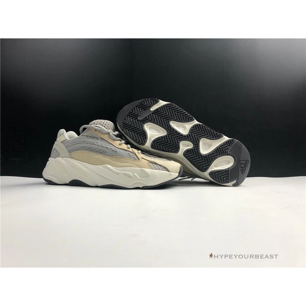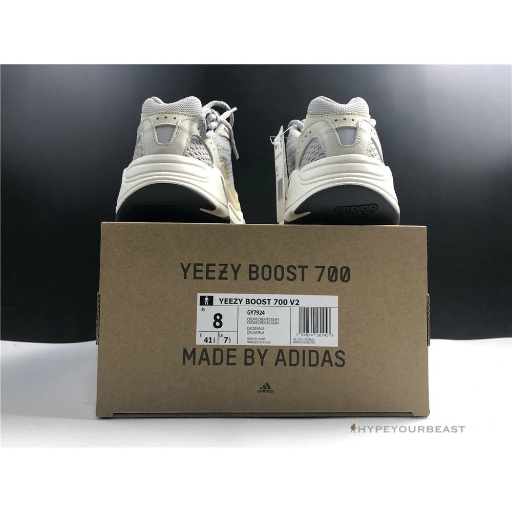Kanye West and Adidas collaboration resulted in a fascinating pair of Adidas Yeezy Boost 700 V2 Cream. These sneakers include rolled knit upper material available in a pale grey hue. It also showcases tan nubuck overlays and tonal no-sew skins. Other than that, these kicks also carry an off-white finish in their exaggerated EVA midsoles. Flaunting these sneakers on your feet brings you into the next level of style and performance due to the neutral colorway and full-length Boost unit construction.