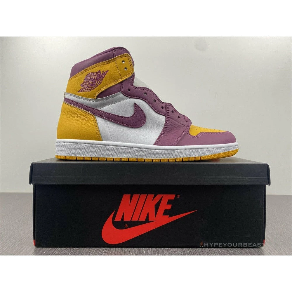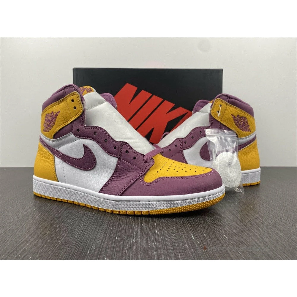 Air Jordan 1 High OG ‘Brotherhood’ features the brand’s collaboration with three-time NBA champion Dwyane Wade. These sneakers honor Wade’s Brotherhood mantra as it celebrates unity, teamwork, and brotherhood. Brotherhood Jordan 1 carries white leather upper bases with mauve and bright yellow accents. It even carries mauve Nike Swoosh and Jordan Wings logo. These kicks are completed with white midsoles and yellow rubber outsoles.