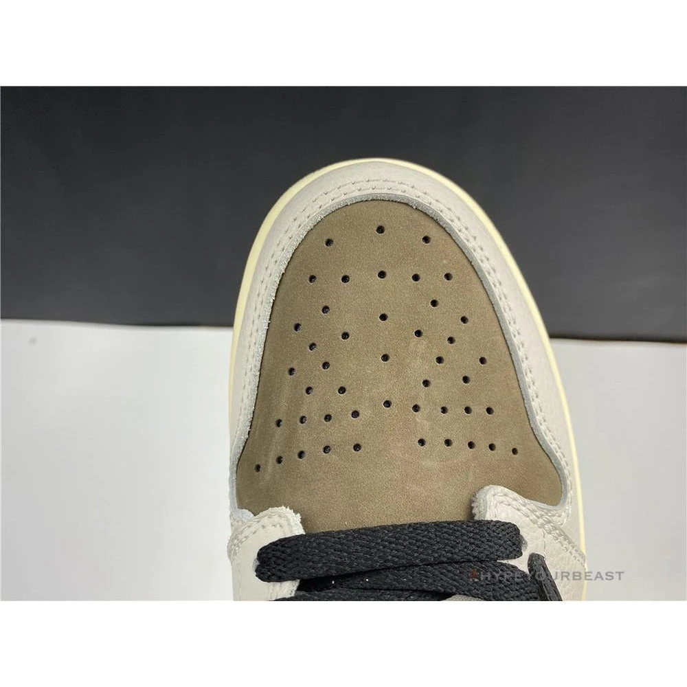 Air Jordan 1 High Travis Scott Reverse is inspired by its original Travis Scott x Air Jordan 1 Retro High kicks. Both these shoes are built by the famous Jordan brand and popular rapper Travis Scott. These sneakers carry white leather construction with dark mocha accenting on the heels and ankle collars. It also brings out a black backdrop holding the collars as well as a black reversed Nike Swoosh. The most unique thing about these Air Jordan 1 High Travis Scott Reverse is its sail eyelets, different from other kicks designed by Travis Scott x Air Jordan. The sneakers are completed with sail midsoles and black rubber outsoles.