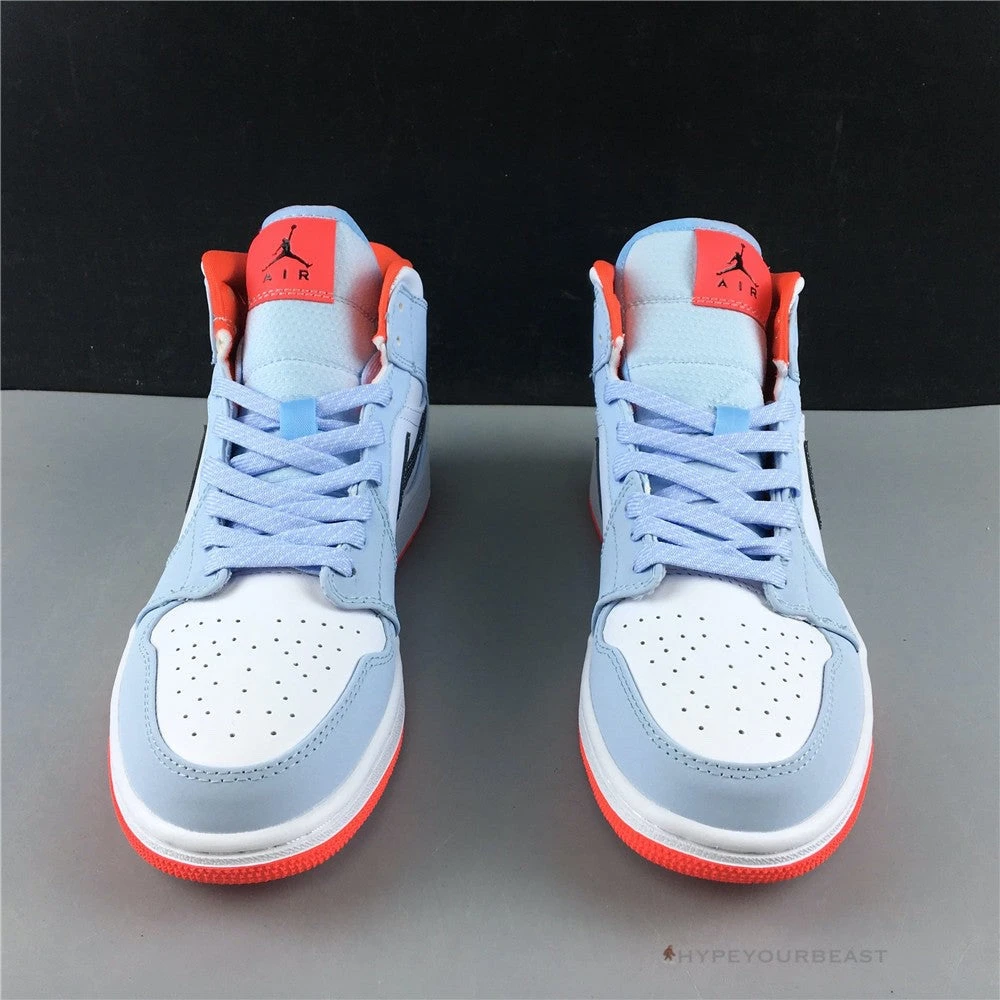 Air Jordan 1 Mid Half Blue will present you with the premium light blue style with vibrant orange tones, elevating your streetwear attire. It will also give a captivating impact on your peers as you walk with its comfy, cushy, and smooth shoe construction. Get Air Jordan 1 Mid Half Blue kicks now to try its exciting vibe and shoe performance on your feet.