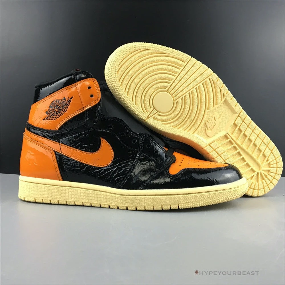 Nike x Air Jordan released the third version of the Shattered Backboard colorway through the Air Jordan 1 Retro High OG Shattered Backboard 3.0. Its unforgettable backstory still bangs the crowd from which Michael Jordan broke a backboard on a game in Italy while wearing the Shattered Backboard colorway. However, Air Jordan 1 Retro High OG Shattered Backboard 3.0 has black crinkled glossy patent leather as the bases and pale vanilla starfish crinkled glossy patent leather on the toe, Nike Swoosh, and heel. This pair embraces the vintage looks as it owns rugged and crinkled features for your feet.