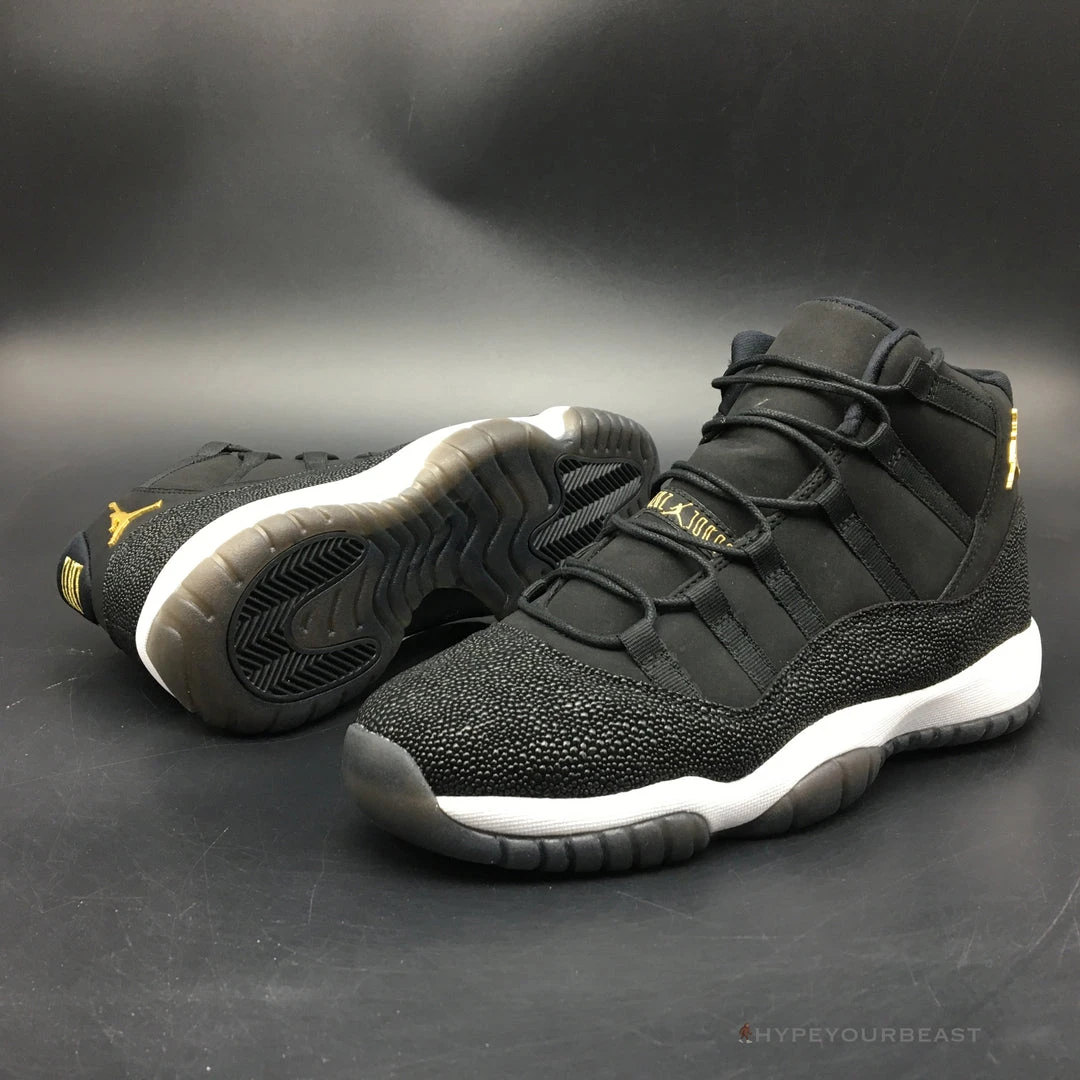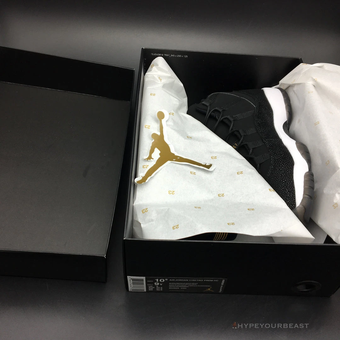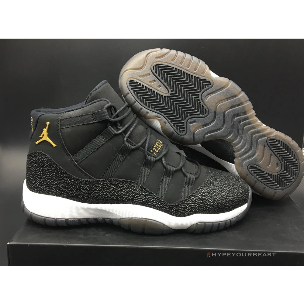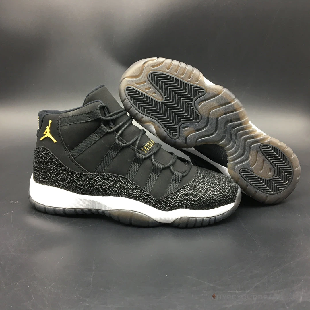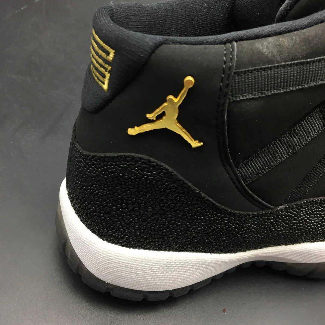 All black with little white and gold accents are the primary effects of Air Jordan 11 Retro Premium ‘Heiress’. It presents the black suede upper bases with metallic accents shimmering along with the Jumpman logo on the heel. It also carries gold embroidered on the tongue. Besides that, the sneakers also offer white midsoles and semi-translucent outsoles for better style and appeal. If you wish to feel the luxe look on your feet, you shouldn’t pass Air Jordan 11 Retro Premium Heiress.