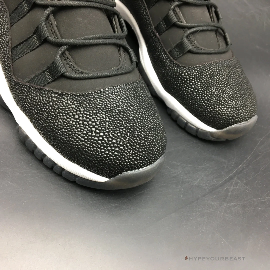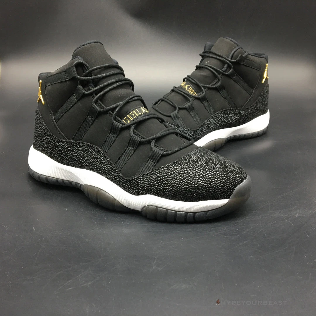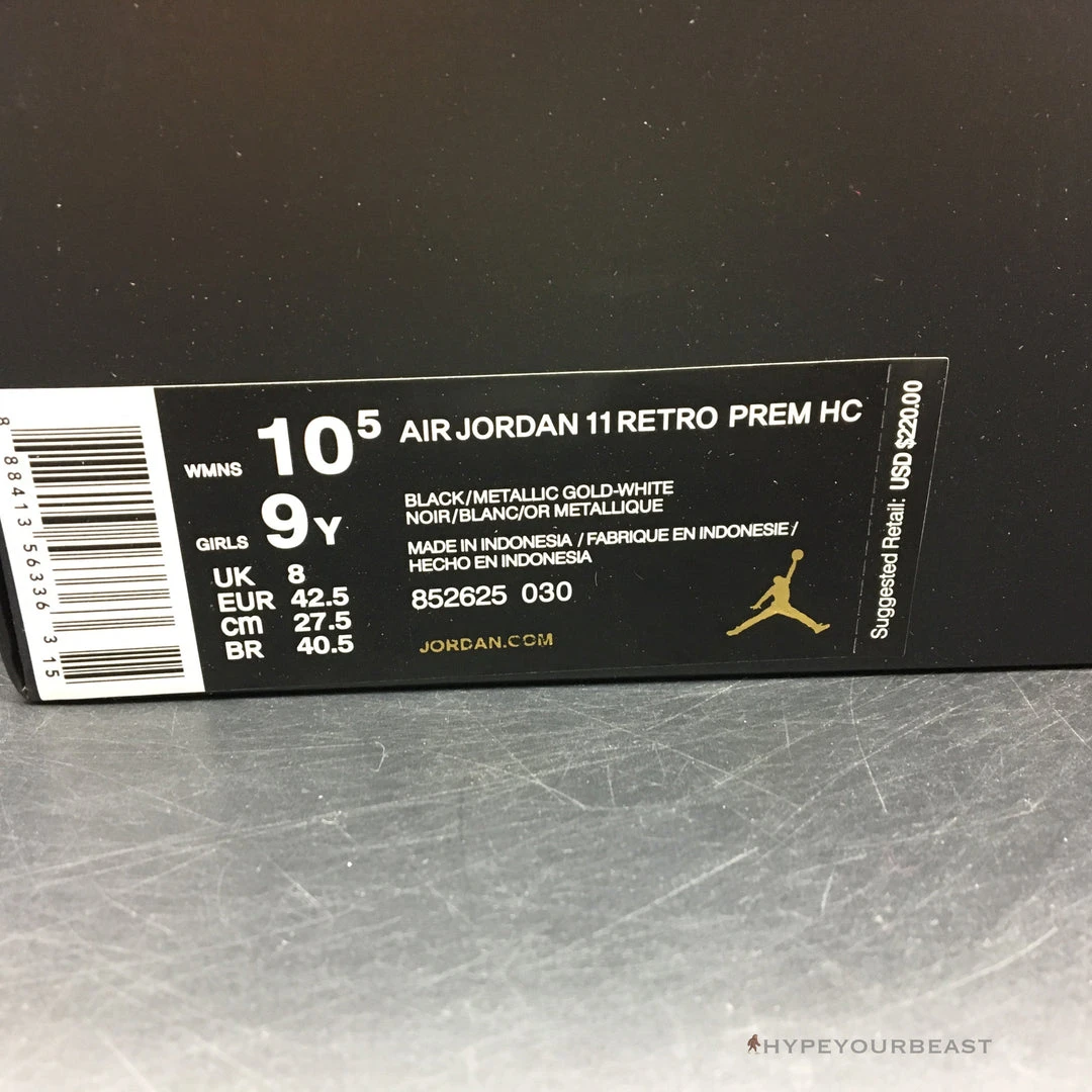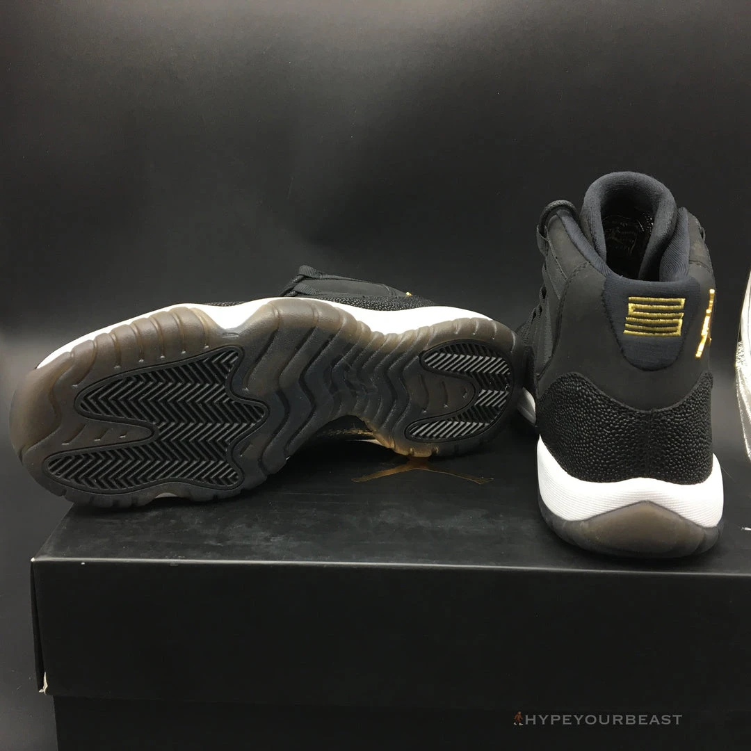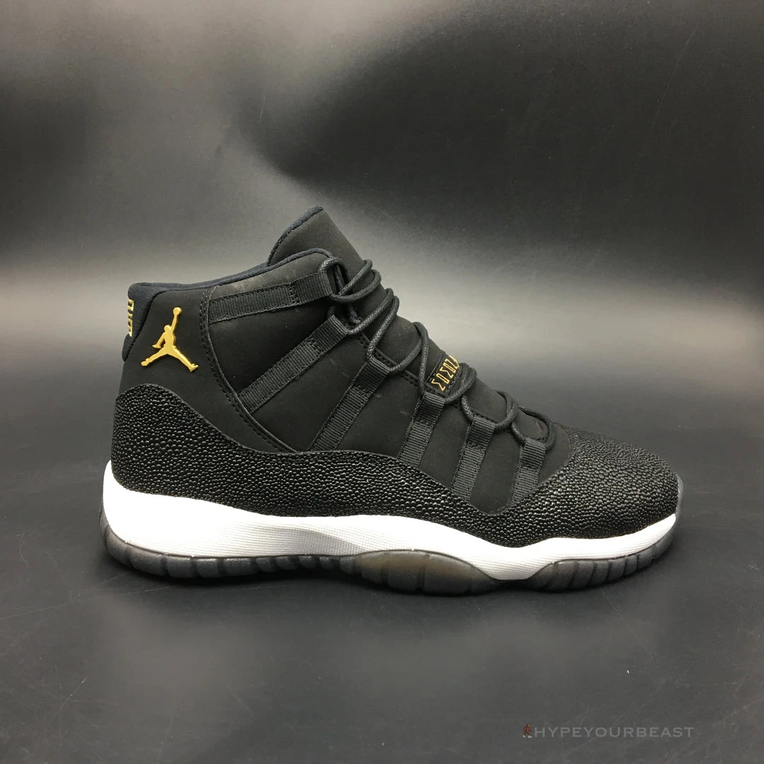 All black with little white and gold accents are the primary effects of Air Jordan 11 Retro Premium ‘Heiress’. It presents the black suede upper bases with metallic accents shimmering along with the Jumpman logo on the heel. It also carries gold embroidered on the tongue. Besides that, the sneakers also offer white midsoles and semi-translucent outsoles for better style and appeal. If you wish to feel the luxe look on your feet, you shouldn’t pass Air Jordan 11 Retro Premium Heiress.