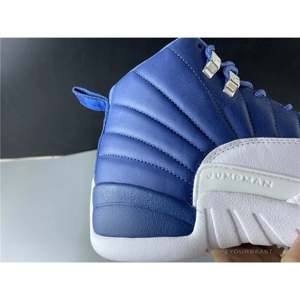 Air Jordan 12 Retro Indigo caters two-tone shades of white and indigo hues. Its elegance and stunning Indigo colorway brings out smooth leather white mudguard and stitched leather accents in indigo touch. Looking on its heels are also appealing due to the lighter blue tabs with Jumpman logo and “23” at the bottom. Wearing this pair of Air Jordan 12 Retro Indigo entails fascinating effects of two-tone colors on your feet.
