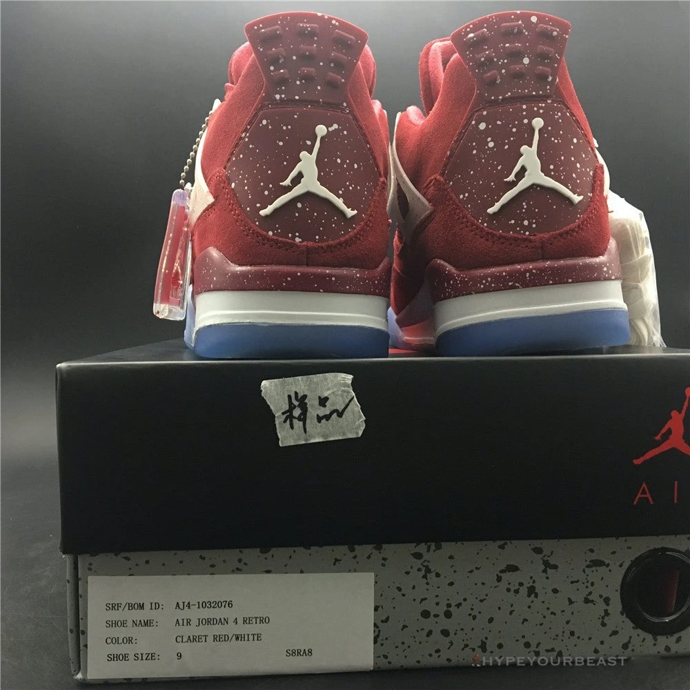 Air Jordan 4 Retro Oklahoma Sooners showcases classy Claret Red colorways which gives an excellent look on your feet. The footwear is constructed from suede Claret Red upper with red netted panels and other incredible overlays of red with white paint spots. These white paint-like sprinkles are seen on the eyelets, mudguard, and even at the heel tab. Air Jordan 4 Oklahoma Sooners PE also owns sleeking white midsoles with visible Air sole technology. Moreover, you surely need to possess this footwear due to its captivating clear rubber outsoles.
