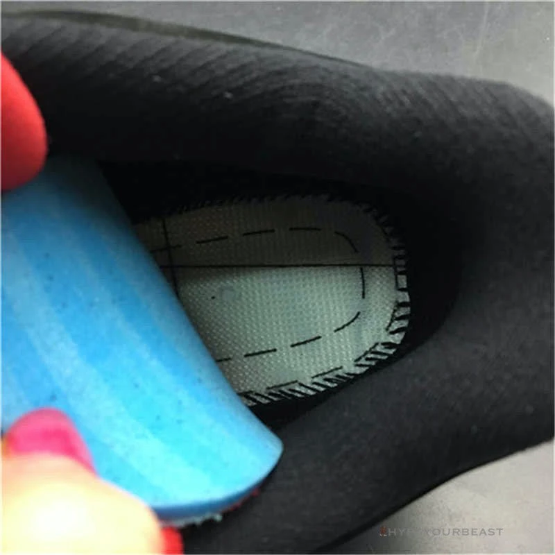 Air Jordan 4 Retro Raptors brings you a ravishing pair of black sneakers with red and purple accents. The sneakers are constructed from black nubuck materials with a netted panel and grey side panel that holds the bright red eyelets. Moreover, Air Jordan 4 Retro NRG Raptors also highlights the purple midsole with visible air technology. Raptors footwear is finished with red rubber outsoles. Grab these sneakers and enjoy their incredible black, purple, and red colorways on your feet.