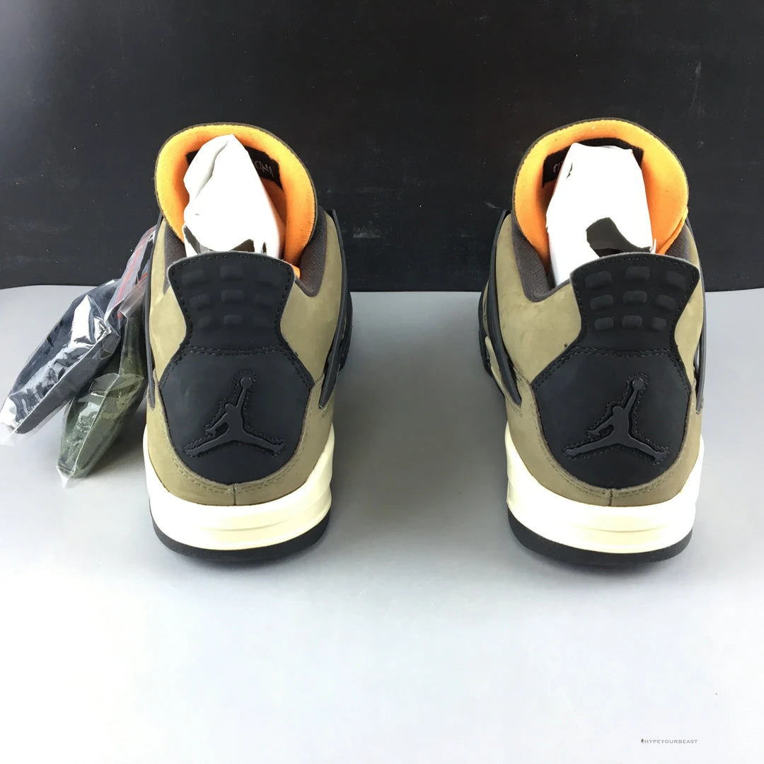 The military-inspired colorway is the style of the Air Jordan 4 Retro Undefeated. It has olive nubuck material on its upper with additional black and orange elements. It also includes white midsoles paring with visible Air tech cushioning on its outsoles. Air Jordan Undefeated owns fantastic features of MA-1 Flight Jacket so the sneakers contain velcro tongue patches to complement the flight jacket style. It was first released with only 72 pairs but you now have a chance to make one yours. So grab it and be as brave as the undefeated.
