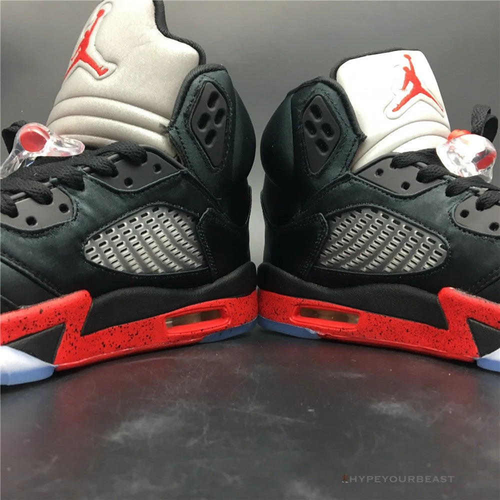 The Chicago Bulls colorway is innovated through the Air Jordan 5 Satin Bred version. Instead of using a leather upper base,ย Air Jordan 5 Retro Satin Bred showcases the satin construction. This all-black upper has other color combinations on the tan-colored tongue tab with the red Jumpman logo. Even its soles are kicking through the red midsoles with visible Air sole technology. The shark-tooth effects on the soles are in black too. Lastly, the sneakers include white and clear outsoles for a more unique style. Grab these sneakers and nail their impressive color, comfort, and performance.