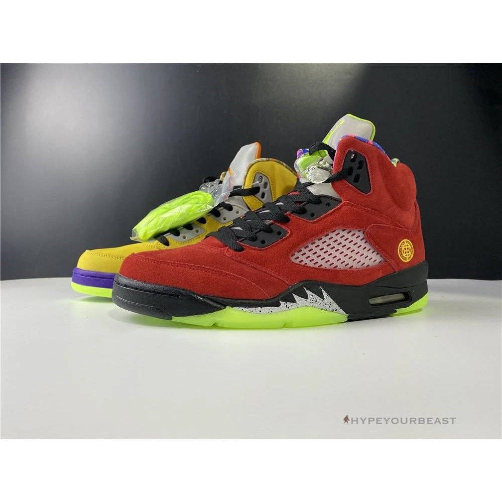 Air Jordan 5 Retro SE ‘What The’ gains lots of attention due to its yellow-colored right shoe and red color-left shoe. These sneakers bring a bold and brave combination of these two colors as it also joins the 30 years celebration of the brand. Air Jordan released Air Jordan 5 ‘What The’ with great construction of suede upper with additional accenting of the brand label. The yellow right shoe has Tokyo colorways, while the red left shoe has the Raging Bull shades. Be one of the wearers of these eye-catching sneakers now!