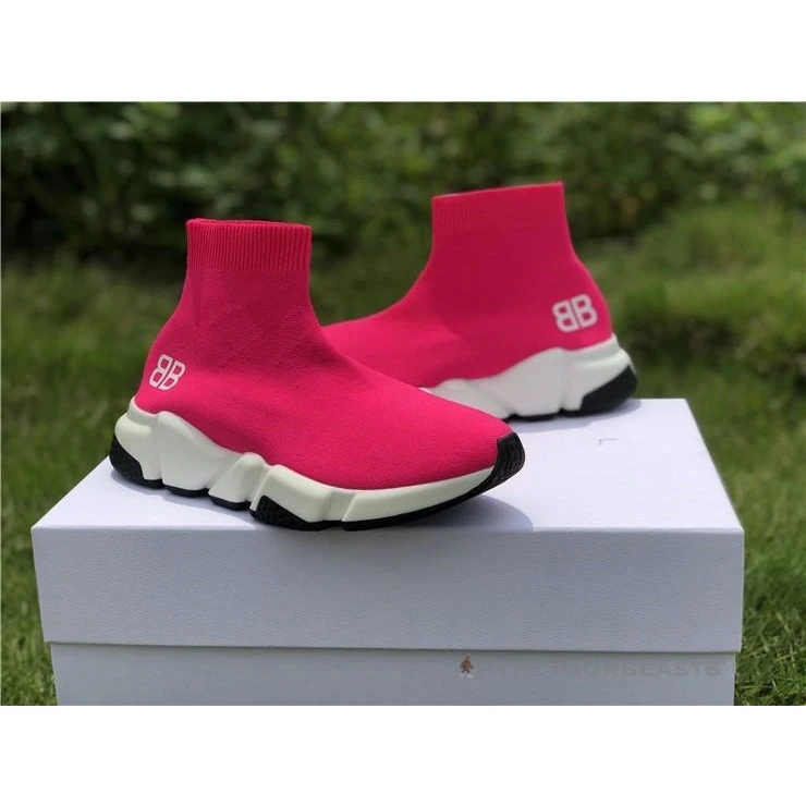 All-pink upper is the highlight of the Balenciaga Speed Trainer Rose Fluo 2019. It is made from technical 3D knitting for its upper and it is available in vibrant pink accent. Its side foot also reveals the branding name in white imprint. These sneakers have no memory foam technology for convenient usage while nailing fantastic colorways on your feet. Besides that, it has ultra-flexible soles in white and black tones. Wear Balenciaga Speed Trainer Rose Fluo 2019 and catch the attention of the crowd.