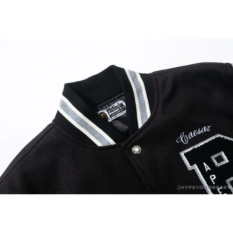 Hypeyourbeast BAPE Embroidered STA Star Stitched Woolen Baseball Jacket ‘BLACK’