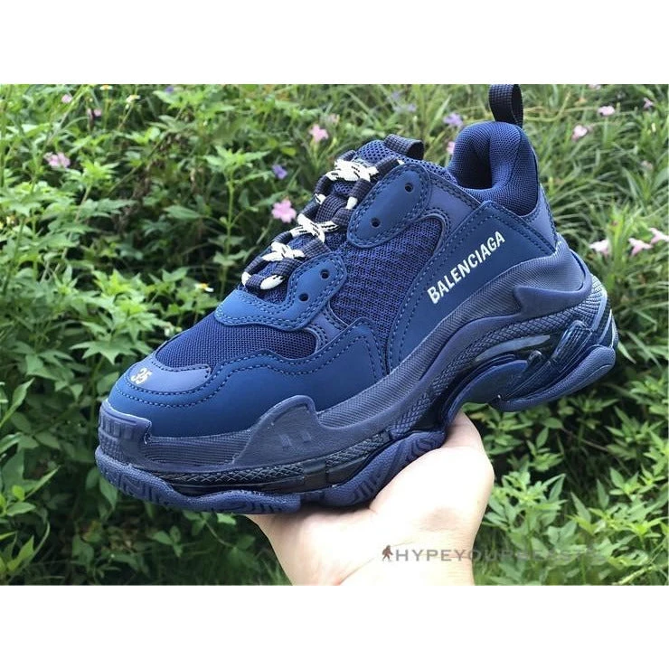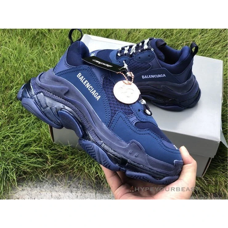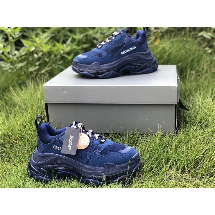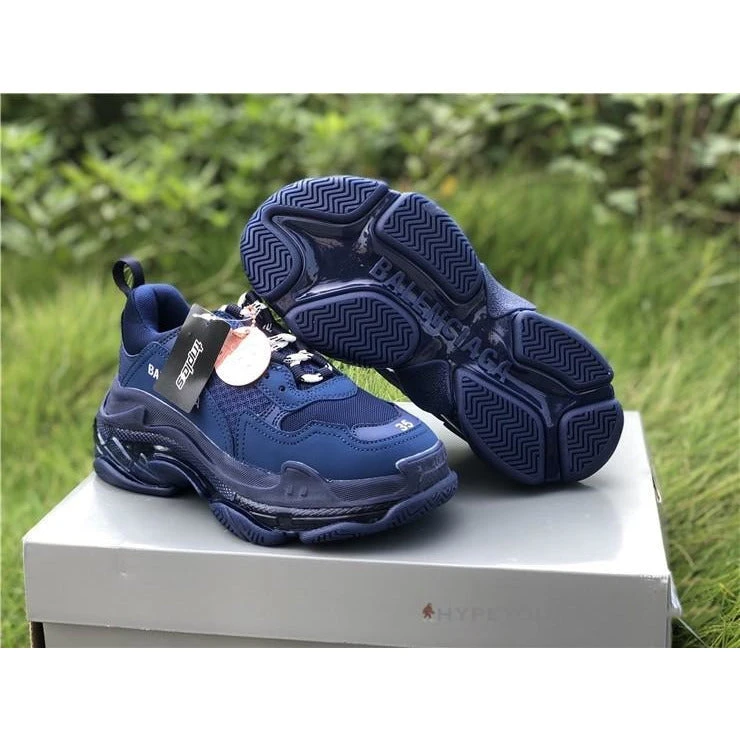 Upgrade your sneakers with BCG Triple S Clear Sole Navy Blue and savor its overall navy blue colorway along with its premium construction!