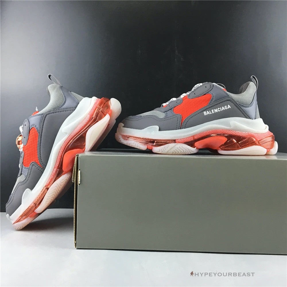 BCG Triple S Grey / Red will bring you a pleasing experience while showing the stylish qualities of the kicks. Try walking with these top-notch kicks to improve your gym, walk, or any sports activities. Wear BCG Triple S Grey / Red sneakers with any outfit on your wardrobe and enjoy its unique translucent style on your soles.