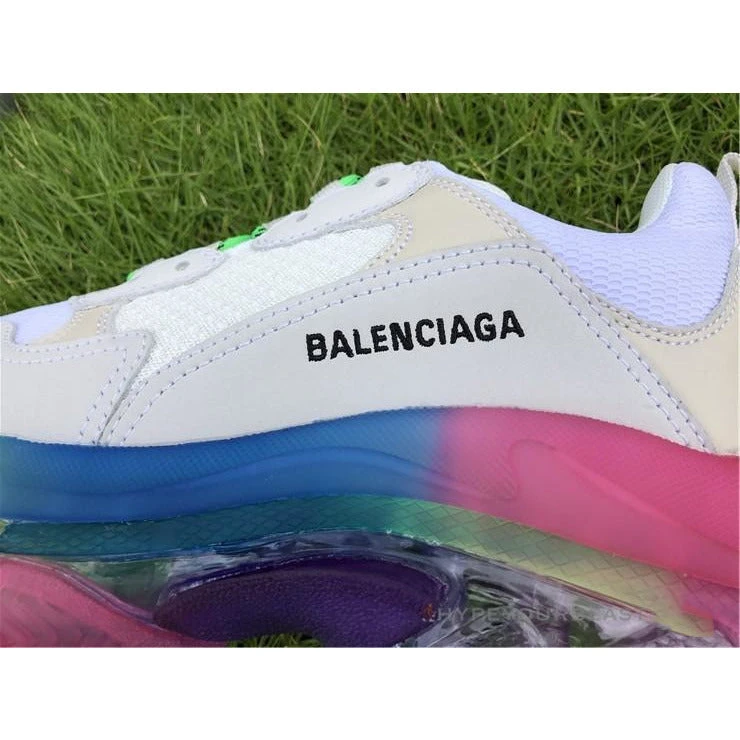 Grab BCG Triple S Rainbow Sole and show off its white style with rainbow accents on the sole, enhancing your streetwear and gym OOTD.