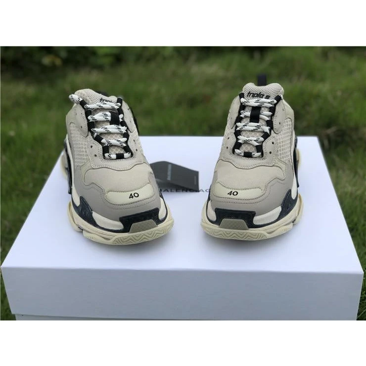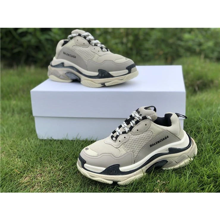 Featuring both vintage and contemporary styles are the main highlight of the Balenciaga Triple S Trainer Vanille. It has a classic Vanille tone in leather, mesh, and nubuck materials. It also includes convenient pull-on tabs, tongue badges, and hiking-style laces. Balenciaga Triple S Trainer Vanille also features a triple-layered rubber sole in colors white, black, and Vanille. Grabbing one of these sneakers brings out a stunning and elegant look.