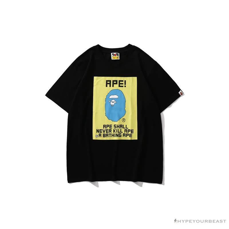 Hypeyourbeast Clothes BAPE Ape Head Blue X Yellow Contrast Letter Tee Shirt