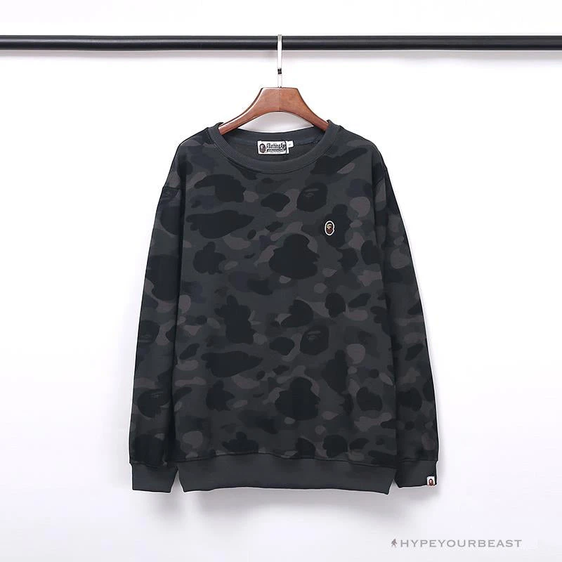 Hypeyourbeast Clothes BAPE Classic Ape Head Embroidered Camouflage Long Sleeve Shirt ‘GREY’