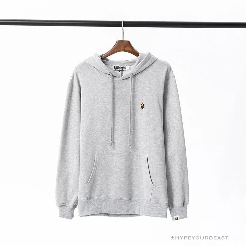 Hypeyourbeast Clothes BAPE Classic Ape Head Embroidered Standard Cotton Terry Hoodie ‘LIGHT GREY’