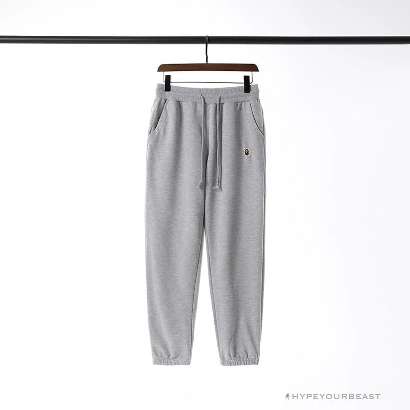 Hypeyourbeast Clothes BAPE Classic Ape Head Embroidered Standard Cotton Terry Pants ‘LIGHT GREY’