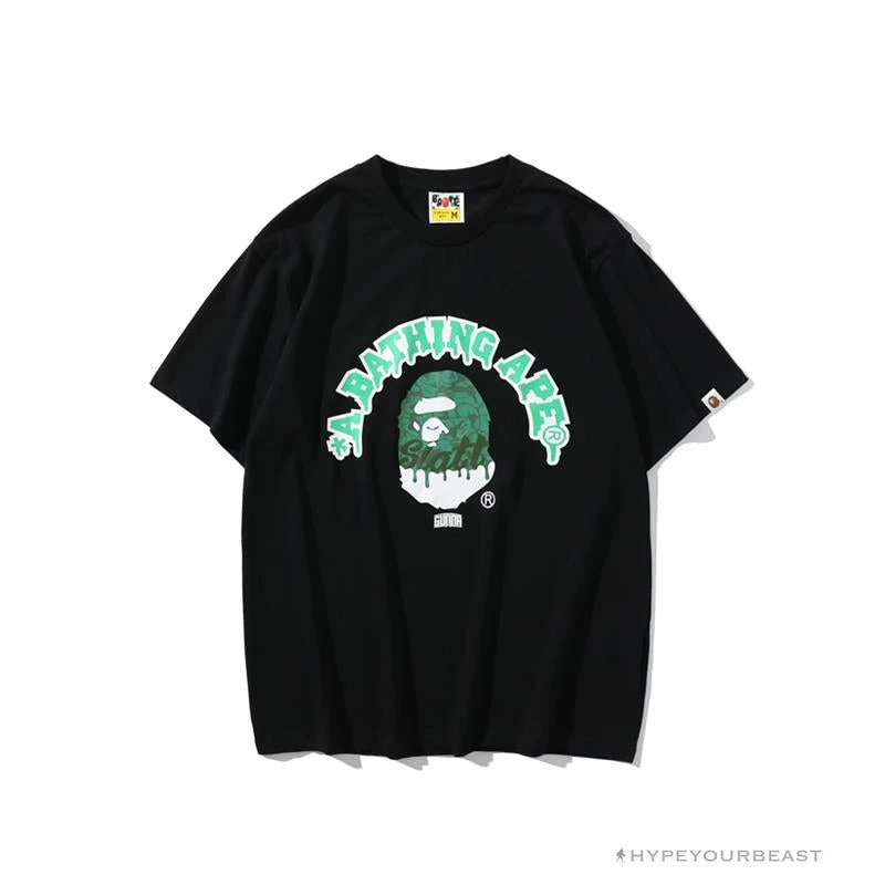 Hypeyourbeast Clothes BAPE Paint Splash Green Camouflage Tee Shirt ‘BLACK’