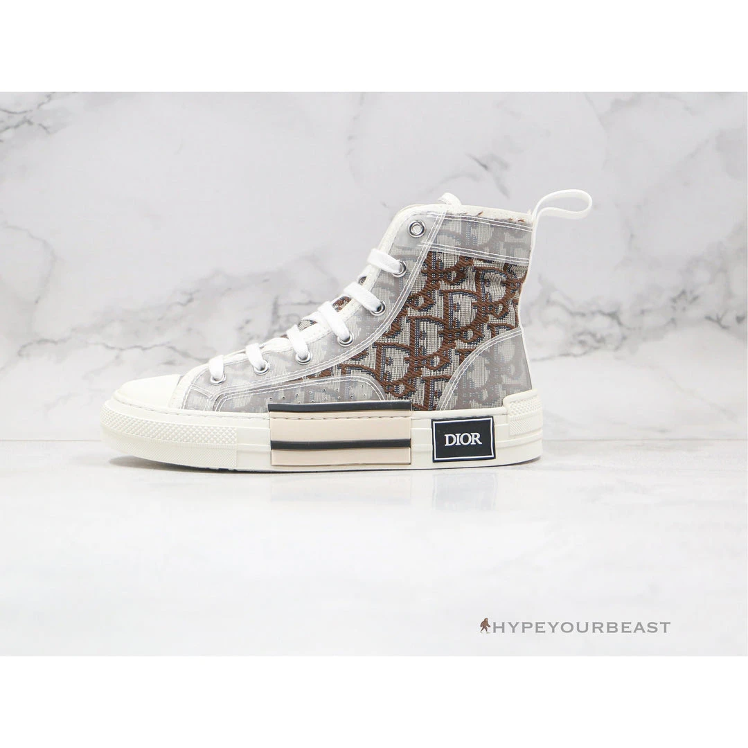 Striking high-top sneakers with brown Dior prints are showcased on the Dior High Top White Brown. This pair of footwear features the classic Dior logo prints in brown color. It even includes clear translucent overlays which made it more contemporary. The sneakers also have white pull-on tabs, white forefoot, white lacing system, and white midsoles. Other than that, Dior also added the stunning black and cream patch and Dior logo patch on the midsoles for extra style. Wear this pair of charismatic vintage sneakers and nail its overall look on your feet.