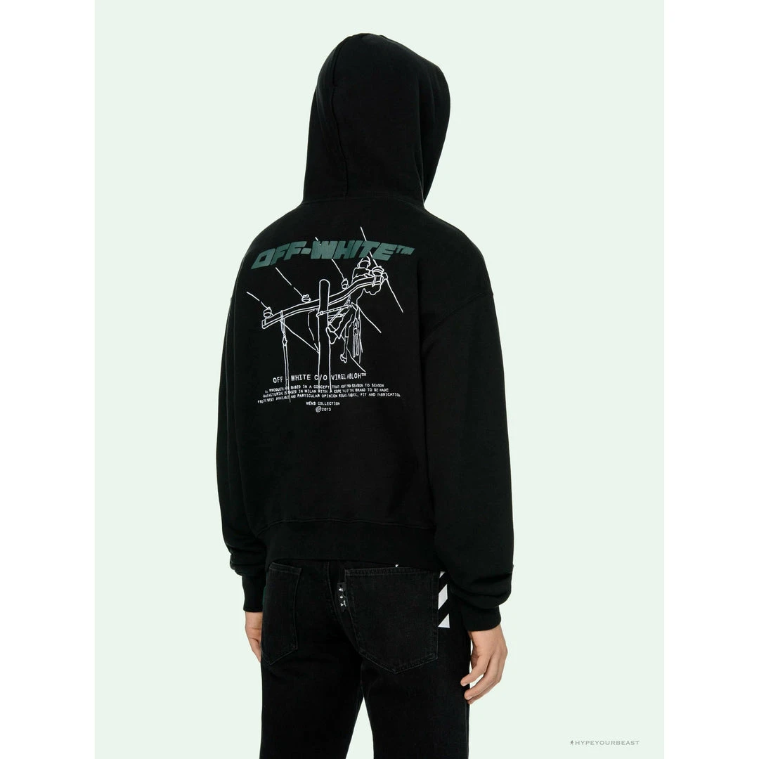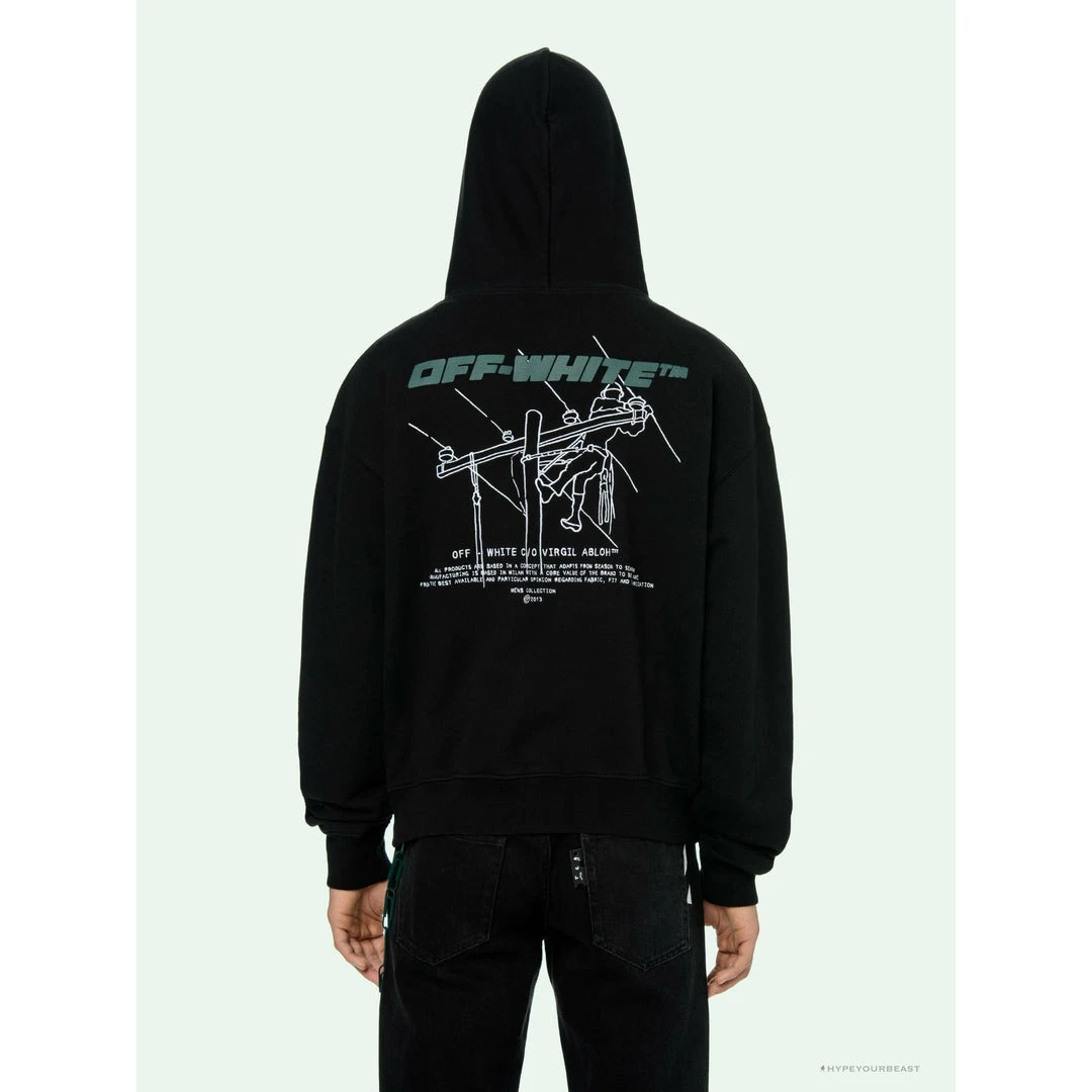 Hypeyourbeast Hoodies & Jackets OFF-WHITE Hand-Painted Utility Pole Worker Hoodie ‘BLACK’