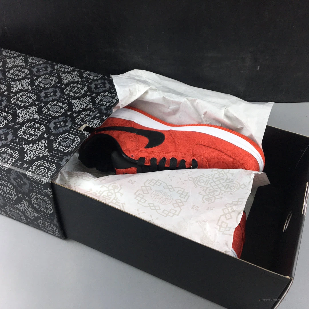 Perfect for the Chinese New Year celebration is a new collaboration Nike Air Force 1 World x CLOT sneakers. It manifests the iconic New Year theme and beliefs of happiness, luck, and prosperity. Thus, the lucky sneakers carry an all-red upper made from the red Clot Royale Deluxe silk textile with embroidered antique Chinese prints. It also features the black lacing system, ankle paddings, and a huge black Nike Swoosh at the lateral side. As for its soles, the Nike Air Force 1 World x CLOT sneakers bring out clean white midsoles with translucent windows at the heel and completing it with a red rubber gum outsole.