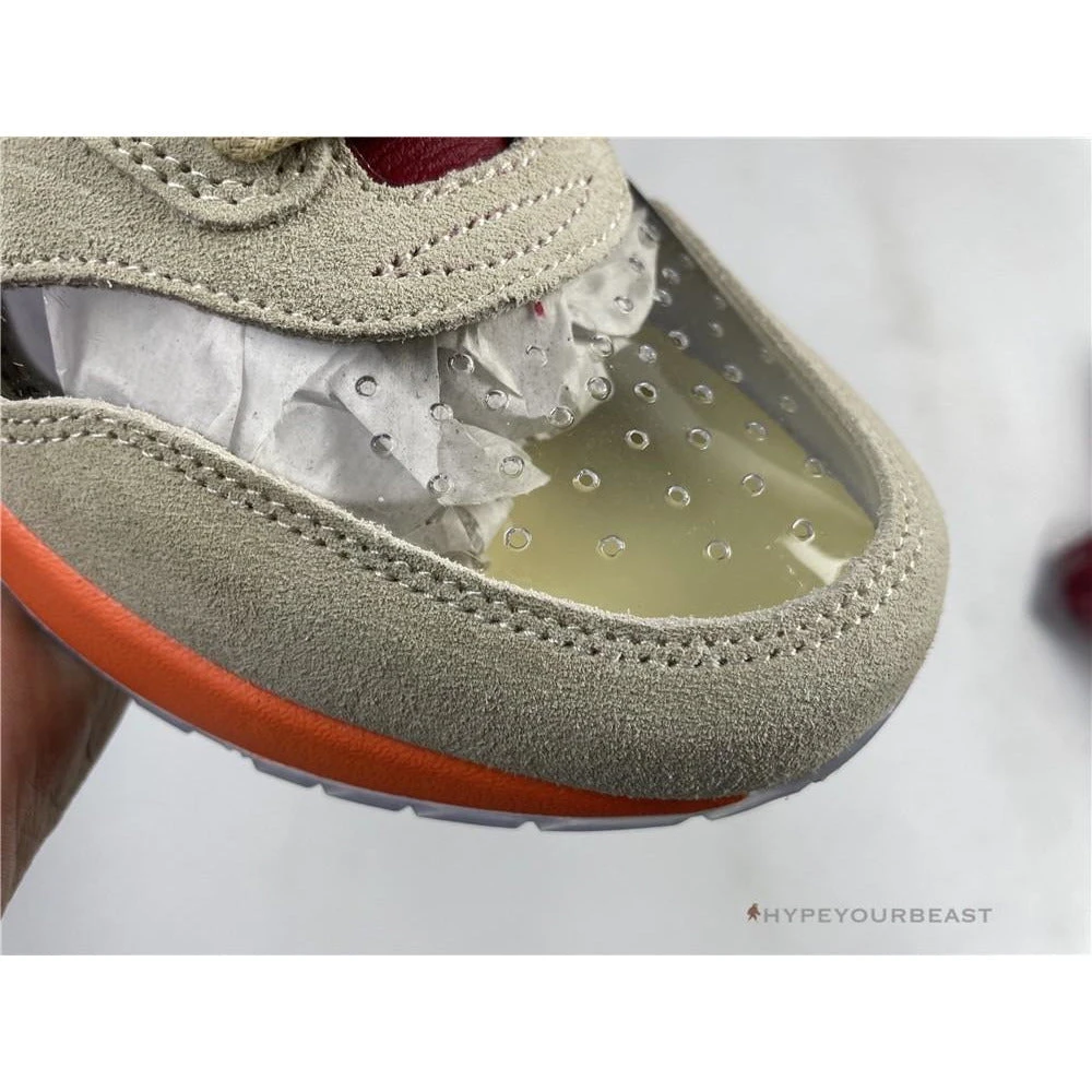 CLOT x Nike Air Max 1 SP ‘Kiss of Death’ is fab sneakers that are loved and supported by many shoe collectors. Nike x CLOT Air Max 1 presents this footwear along with deconstructed tan suede upper bases with a unique translucent paneling finish on the toe box and outsoles. The sneakers also offer red scaly textured Nike Swoosh. Besides that, this footwear also presents red and orange heel accents. CLOT x Nike Air Max 1 SP ‘Kiss of Death’ is completed with visible Air sole technology in its bring orange midsoles.