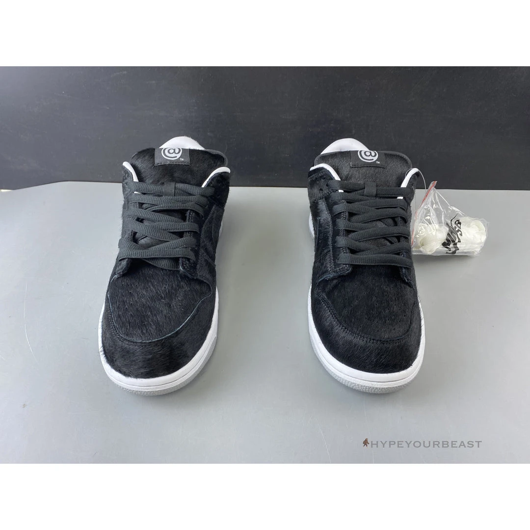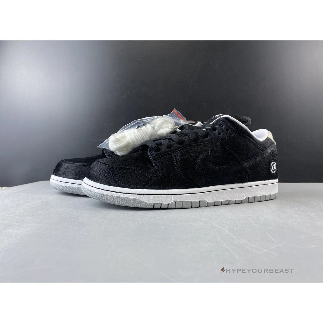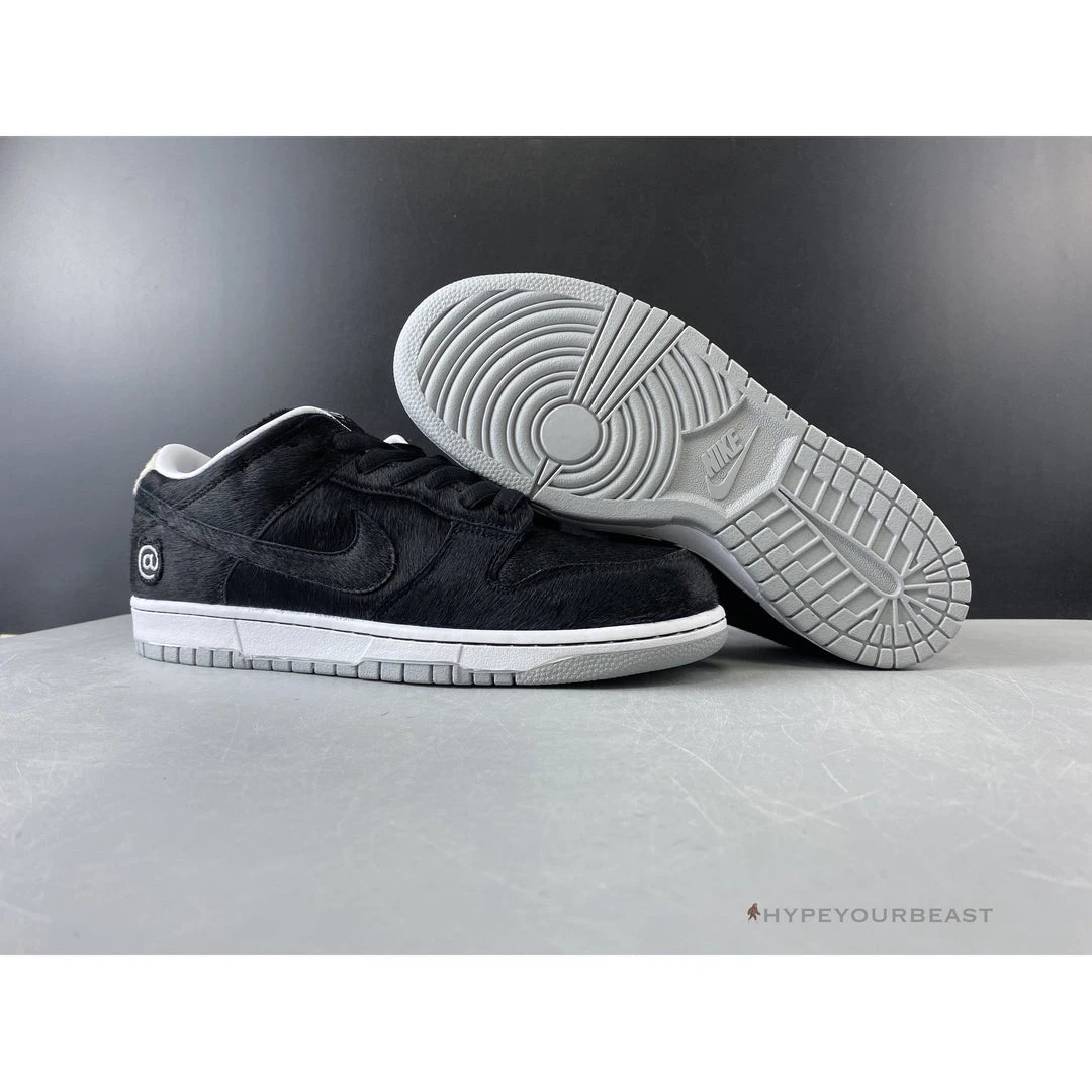 The incredible collaboration of Medicom Toy x Nike resulted in terrific Nike Dunk Low SB BE@RBRICK sneakers. This two-tone pair features high-quality faux black pony hair construction on its upper while it has white pony hair accenting on the heel tabs. The sneakers also reveal “@” symbol patches on the side heel and tongue. Moreover, it includes a white midsole with black lining and grey rubber soles. This pair carries stunning construction which provides you extra appeal on the feet.