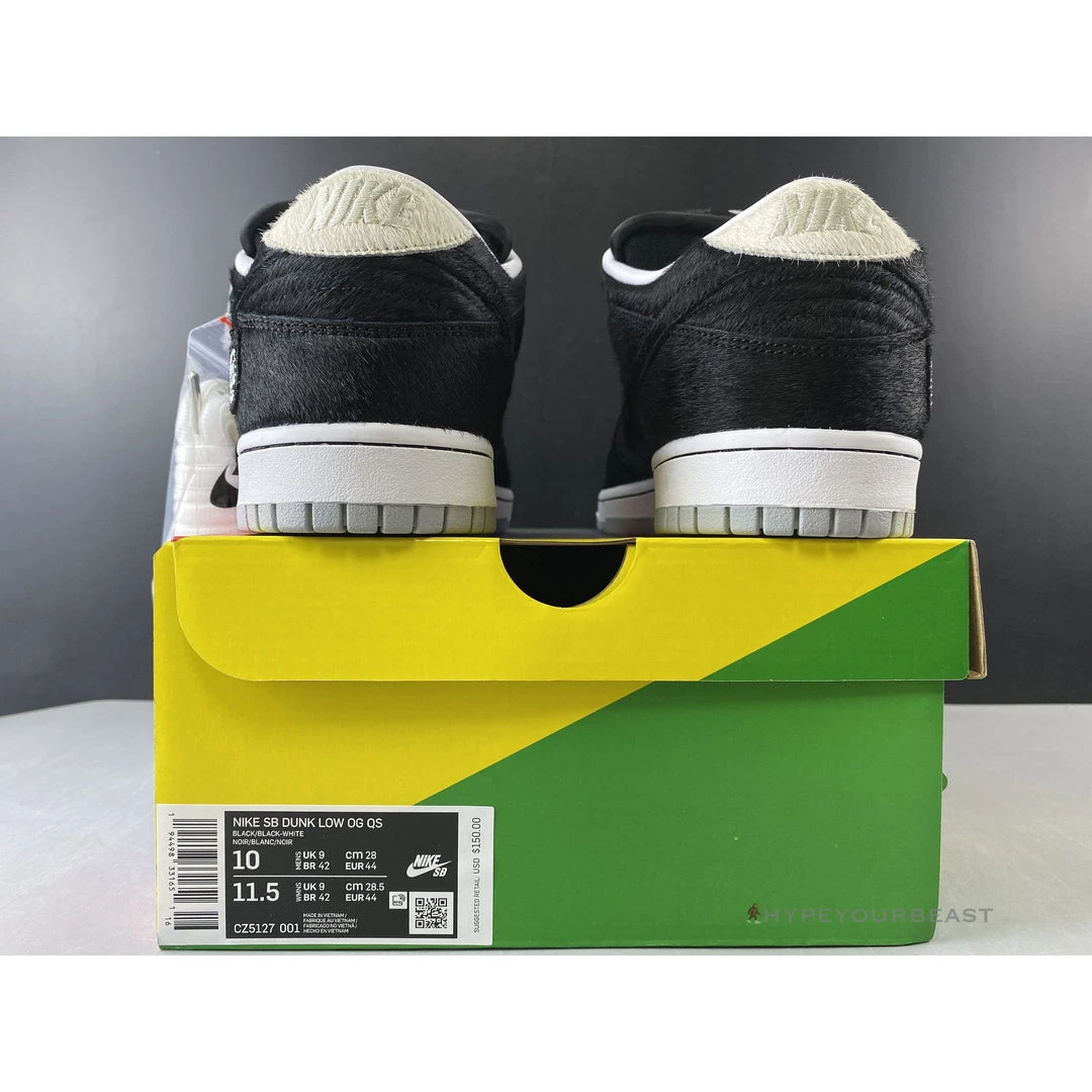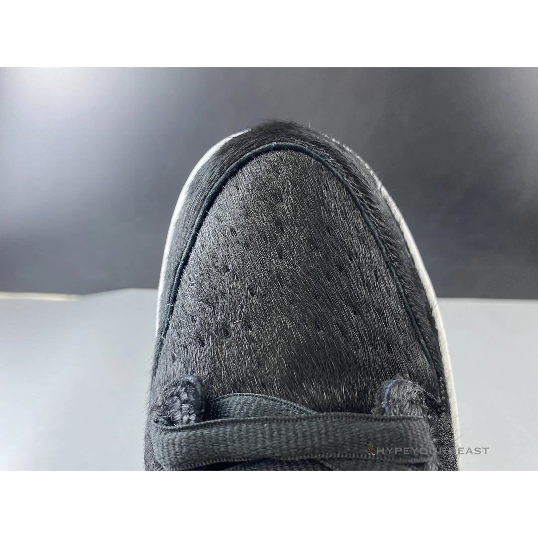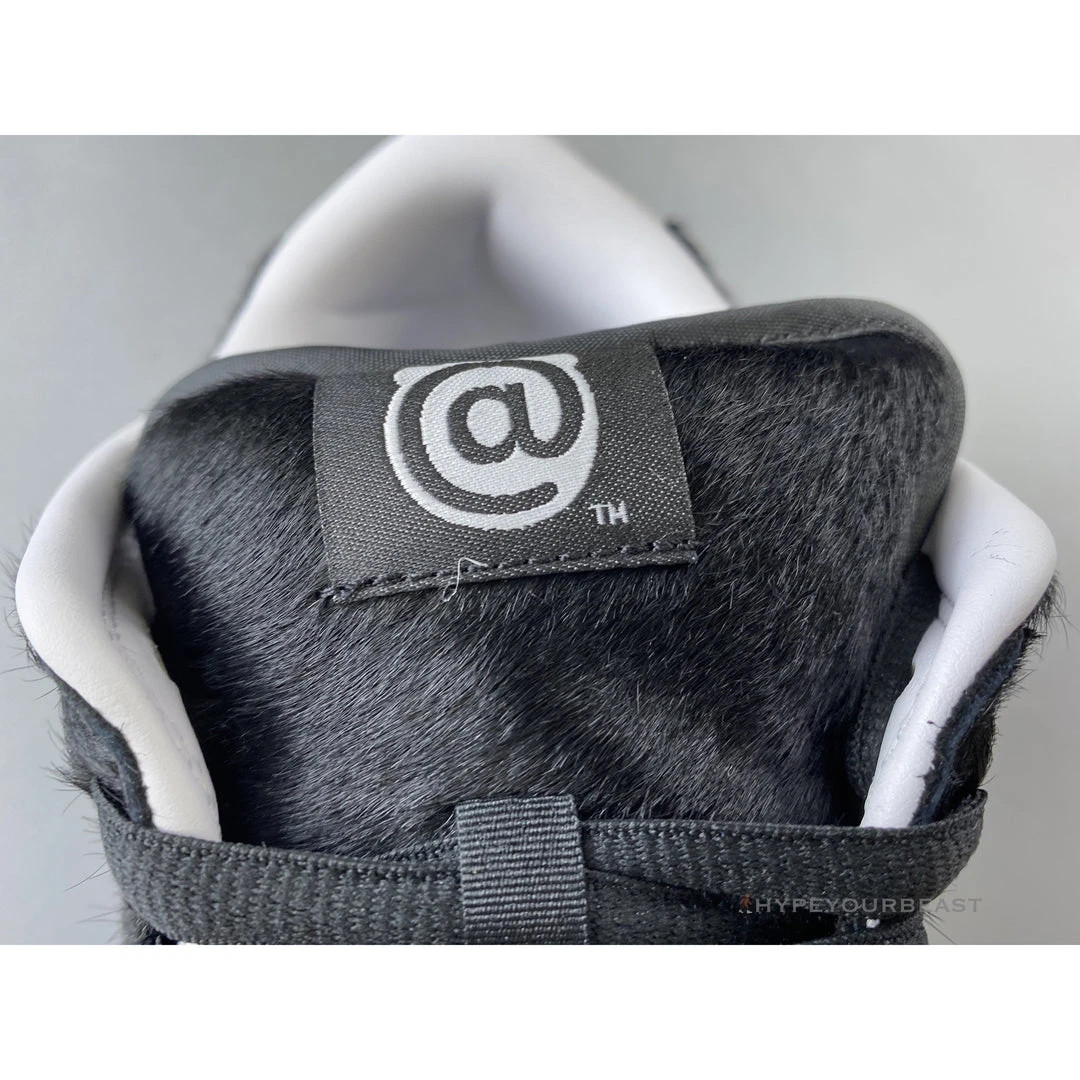 The incredible collaboration of Medicom Toy x Nike resulted in terrific Nike Dunk Low SB BE@RBRICK sneakers. This two-tone pair features high-quality faux black pony hair construction on its upper while it has white pony hair accenting on the heel tabs. The sneakers also reveal “@” symbol patches on the side heel and tongue. Moreover, it includes a white midsole with black lining and grey rubber soles. This pair carries stunning construction which provides you extra appeal on the feet.