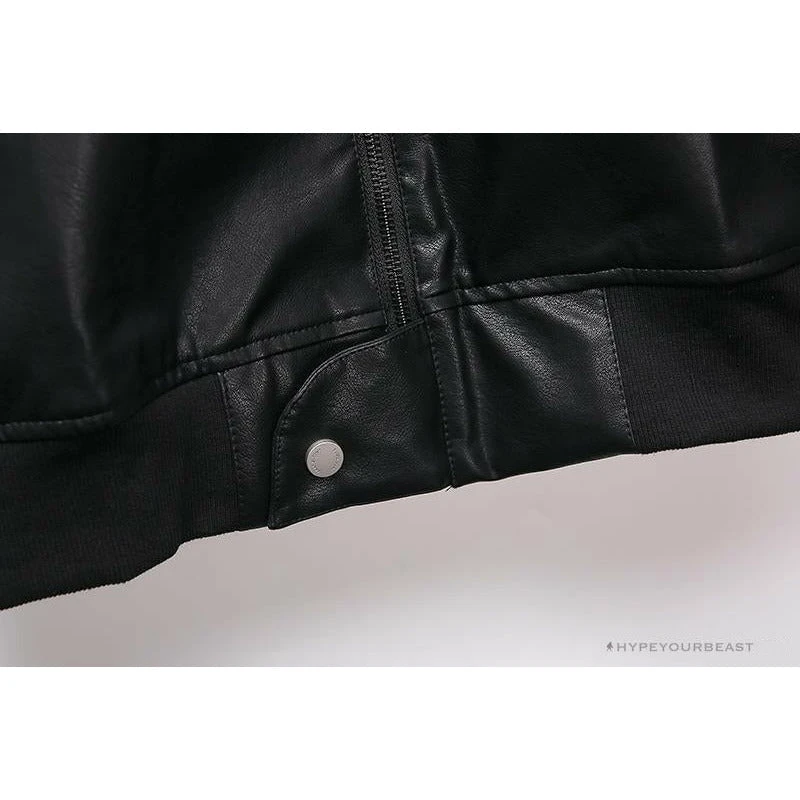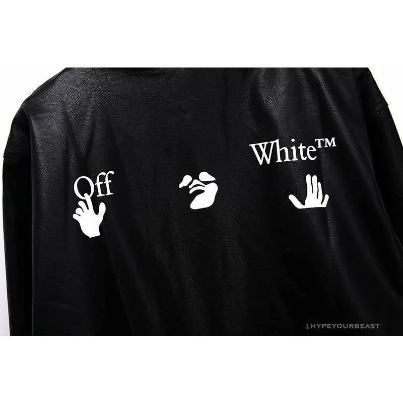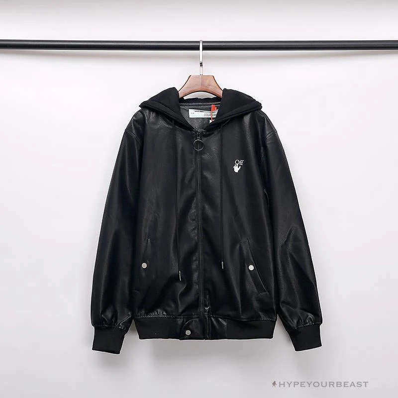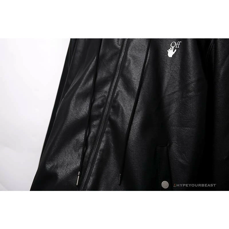 Hypeyourbeast OFF-WHITE 20FW New Logo Hooded Leather Jacket Black Hoodies & Jackets