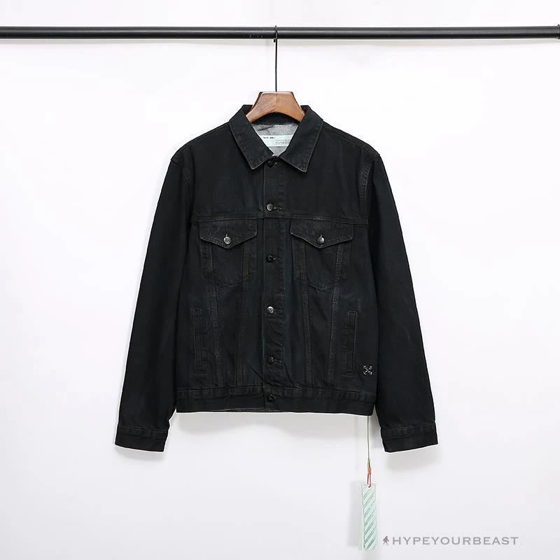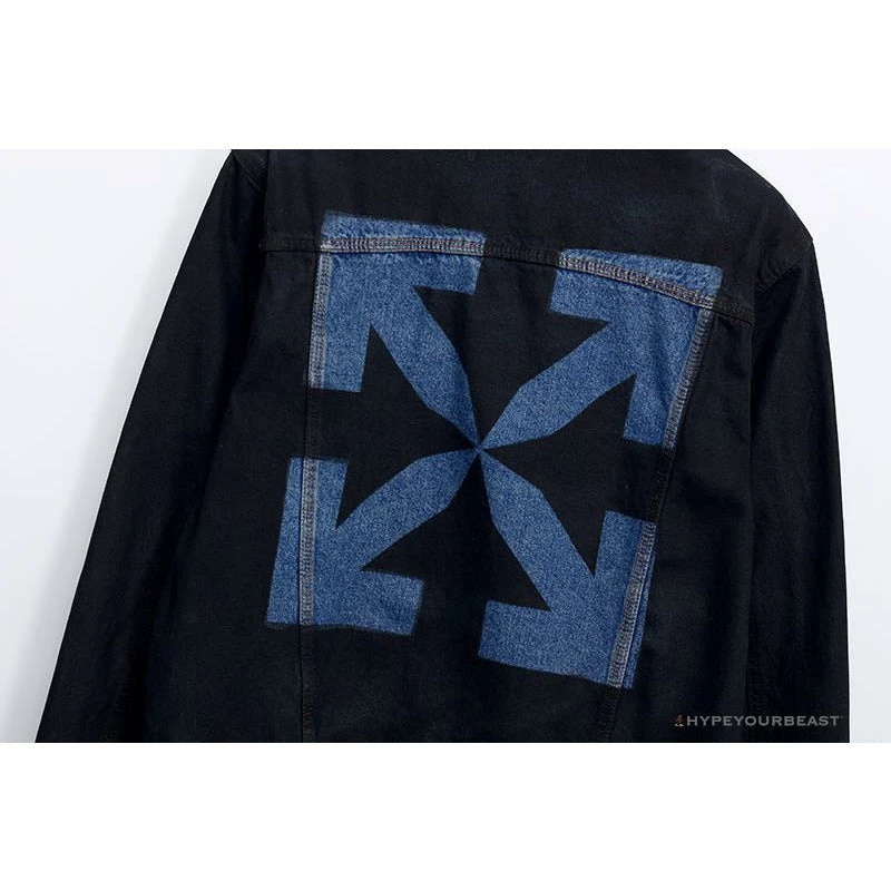 Hypeyourbeast OFF-WHITE Autumn And Winter New ️Back Blue Arrow Wash Denim Jacket Hoodies & Jackets