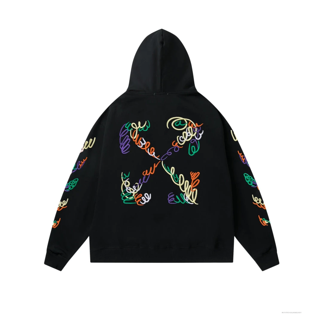 HypeYourBeast Off White Hoodie Embroidered Black Hoodies & Jackets