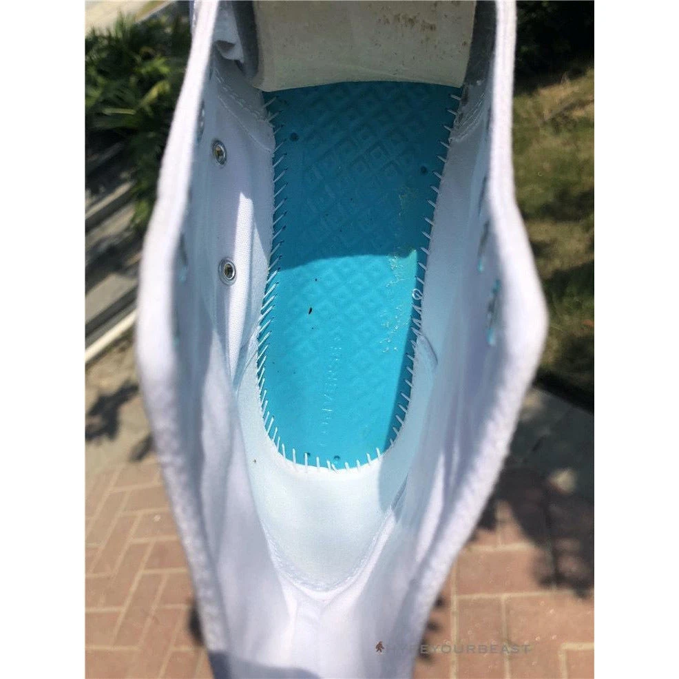 A fascinating pair of Converse Chuck 70 Hi Off White brings out a Converse Chuck 70 Hi Off White Mens clear white pair. It channels the high-top white upper sneakers made from canvas Converse Chuck 70 Hi Off White sneakers never left behind the classic Off-White signature text on its medial sides while it reveals the Converse logo above it. The sneakers also showcase the “SHOELACES” prints on the laces and a bright orange zip tie. It also highlights the terrific black rubber stripes on its vulcanized sole suitable for the bright orange rubber outsoles. The sneakers give you a chance to lighten up white sneakers with orange accents.