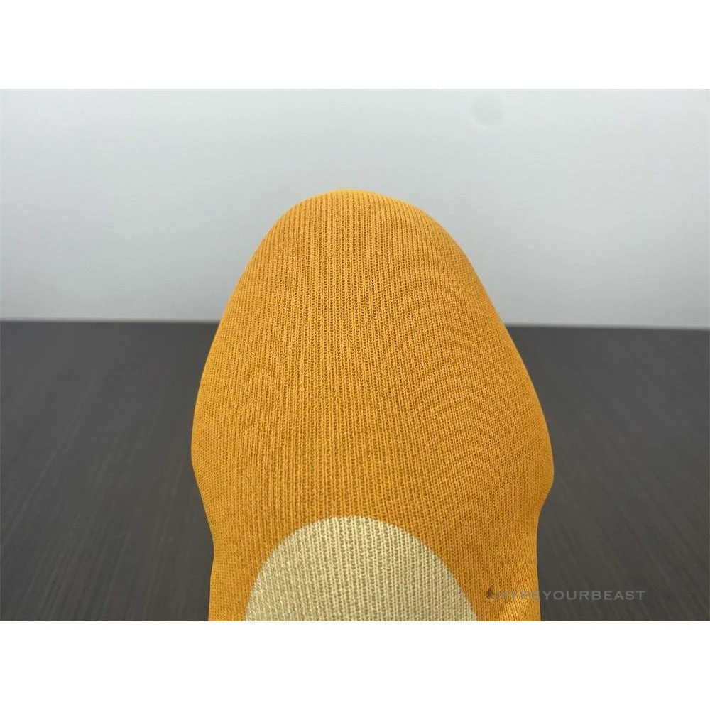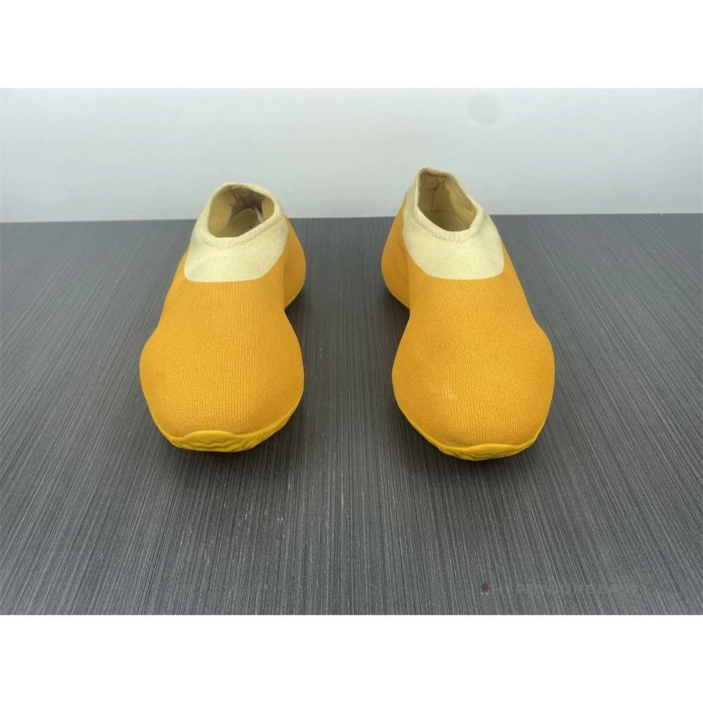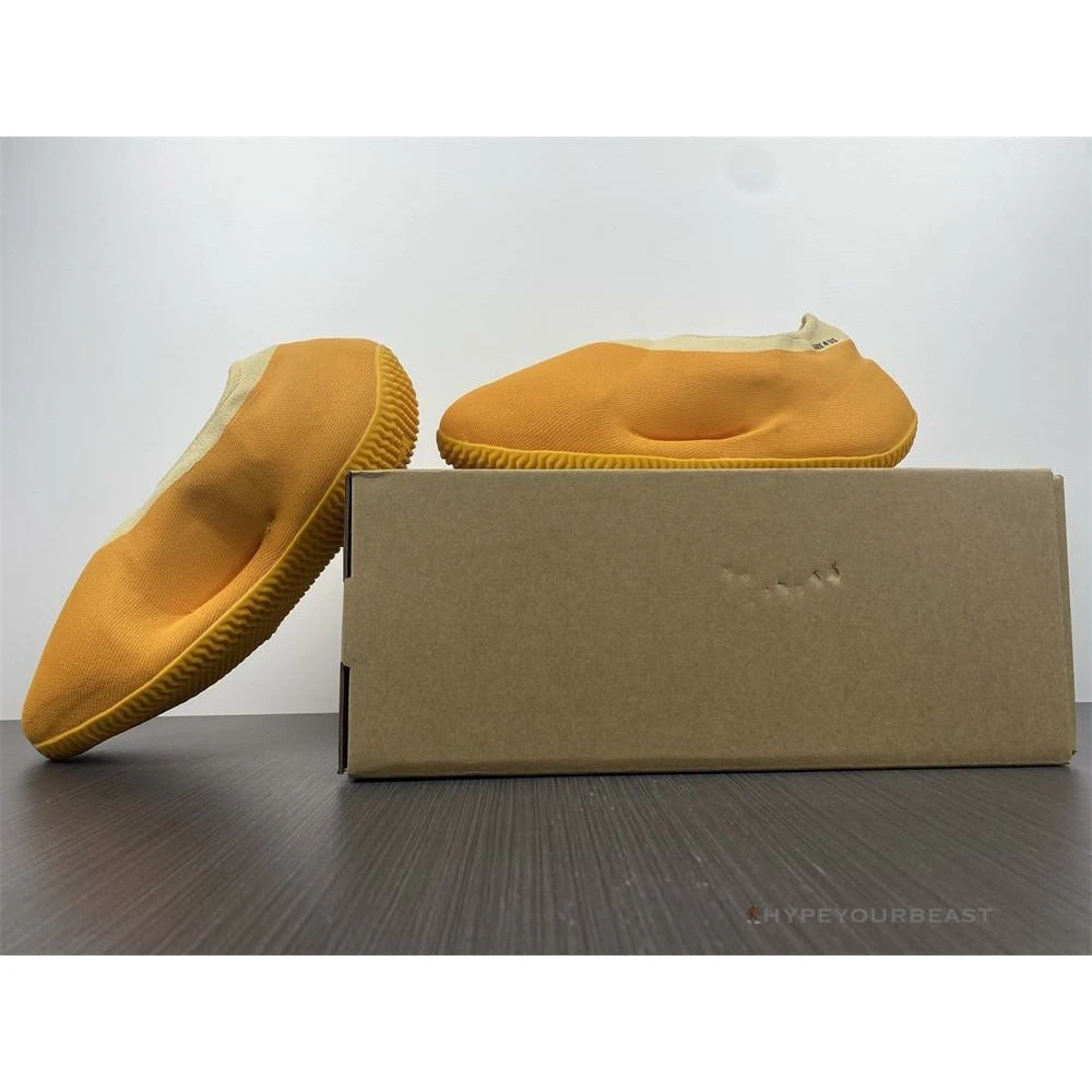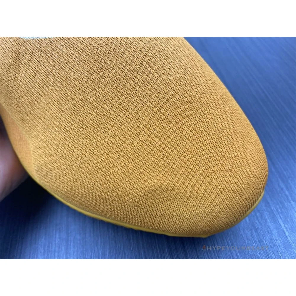 The Adidas Yeezy Knit Runner ‘Sulfur’ is composed of Foam Runner and is made from foam produced from algae, the knitted runner Yeezy is made from well-knitted material. The fully knitted construction, rendered in a neutral beige color with a contrasting mustard yellow finish in most of the upper part, uses a non-slip construction devoid of exterior marking. Embellishments are limited to sizing information stamped on the lateral collar. The sneaker runs on a durable rubber outsole in an assorted yellow finish, with a modified herringbone tread and Adidas brand underneath the heel.